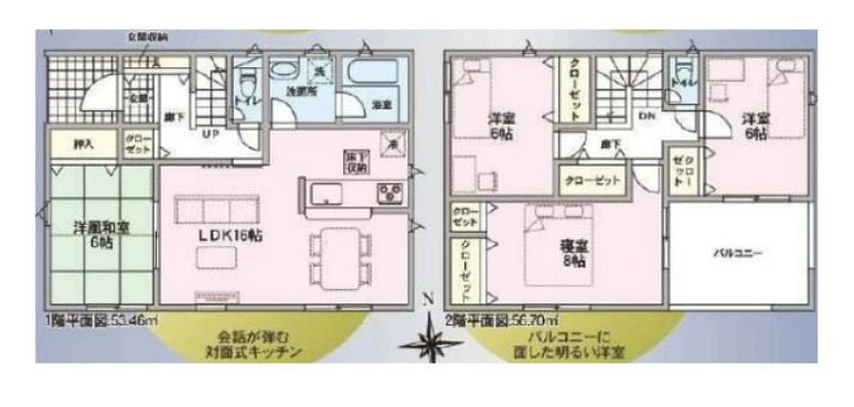 新築ならではの設備仕様に加え、LDK15帖以上・和室付きの使い勝手の良い4LDK。駐車2台可能で、将来的な家族構成の変化にも対応しやすい住まいです。