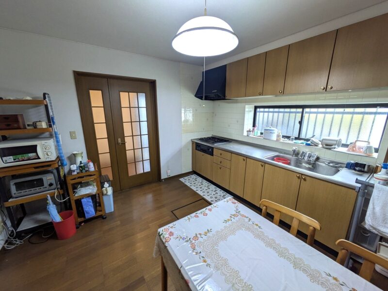 4DKの間取りです。南側には建物はありませんので景色も良く日当たり良好です。敷地内には物置もありますので自転車を格納するのにお勧めです。またキャンプなどの趣味の多いお客様にも荷物を収納するのに重宝します。