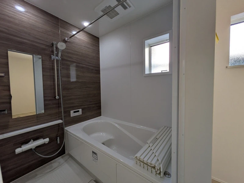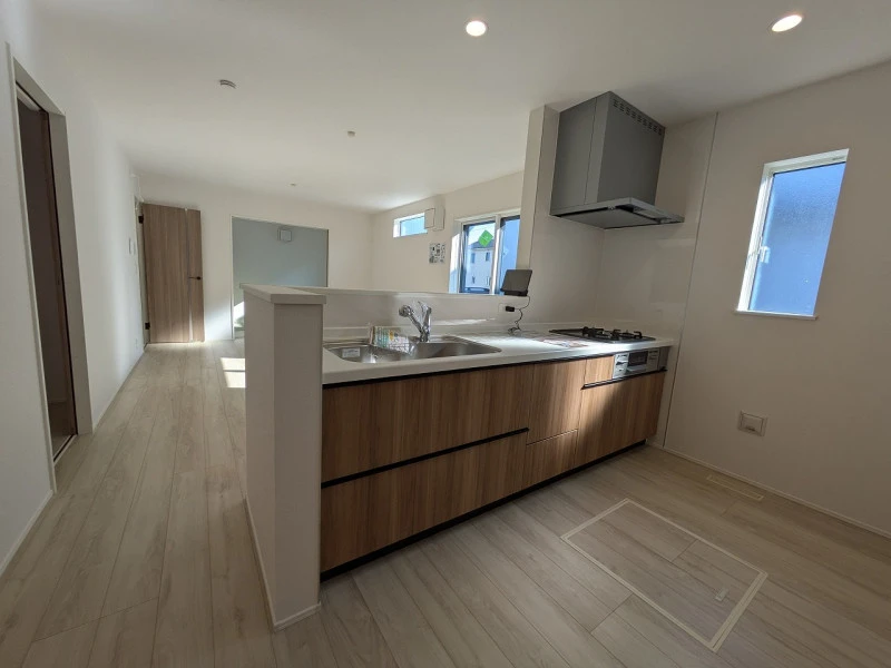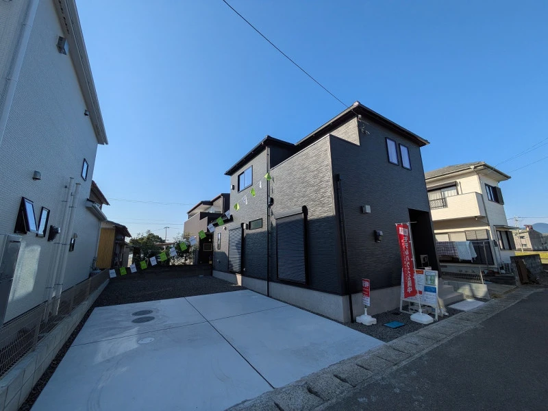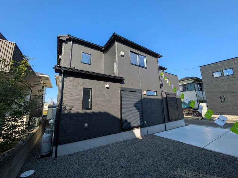 | 設備 | プロパンガス、浄化槽、システムキッチン、トイレ2箇所、浴室乾燥機、複層ガラス、床下収納、駐車3台以上可、ディンプルキー、モニタ付インターホン、火災警報器等設置済、バス・トイレ別、シューズインクローゼット、室内洗濯機置場、ルーフバルコニー、洗面所 | ||