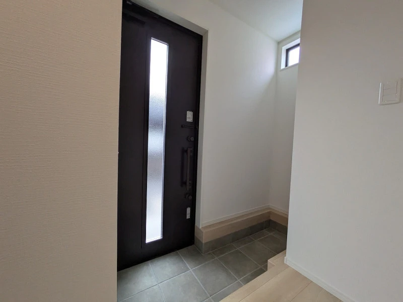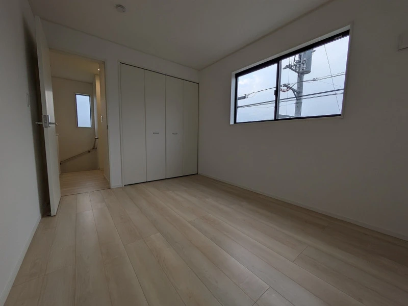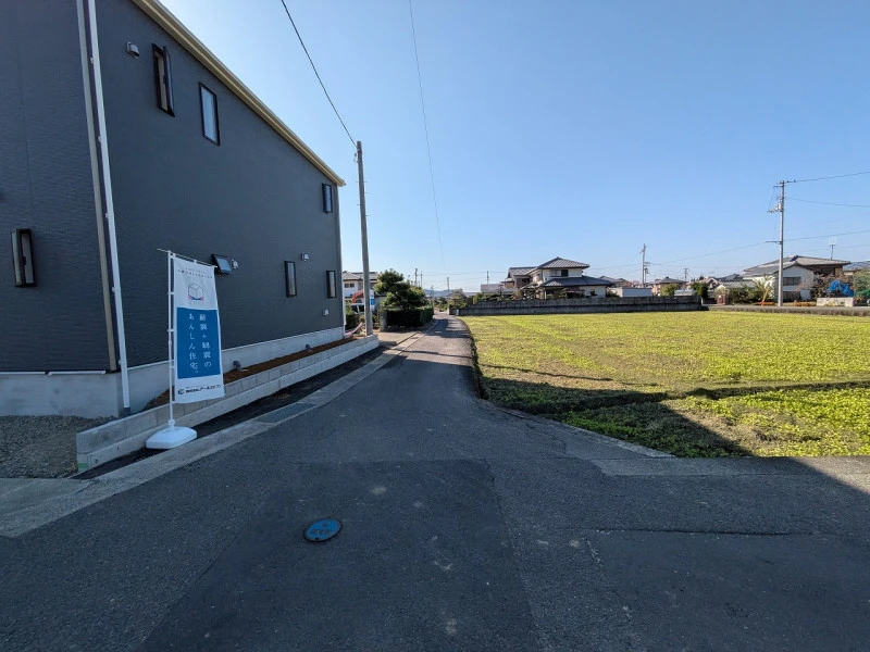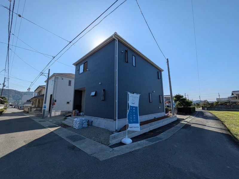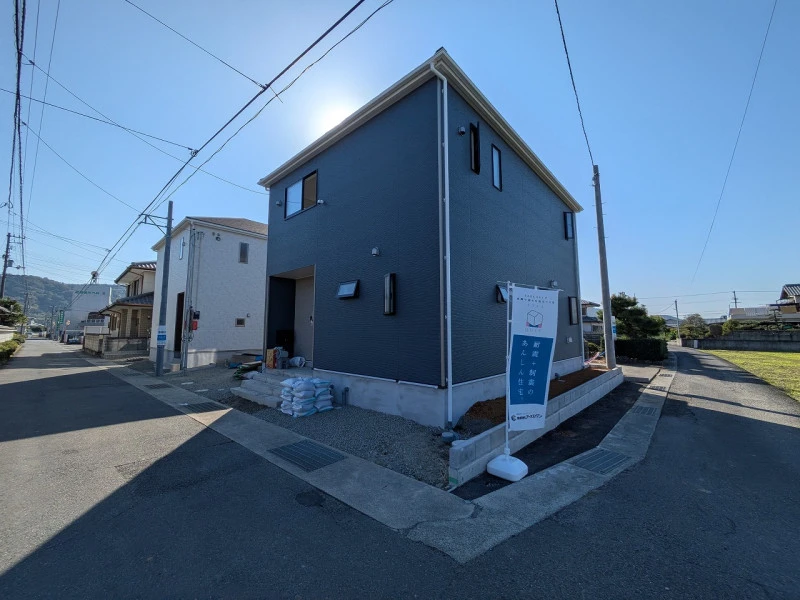 2025年11月に完成予定の物件!システムキッチン、オール電化、乾燥機付ユニットバス、TVモニター付インターホン、うれしい防犯カメラ、人感センサー付玄関灯、駐車場2台可!