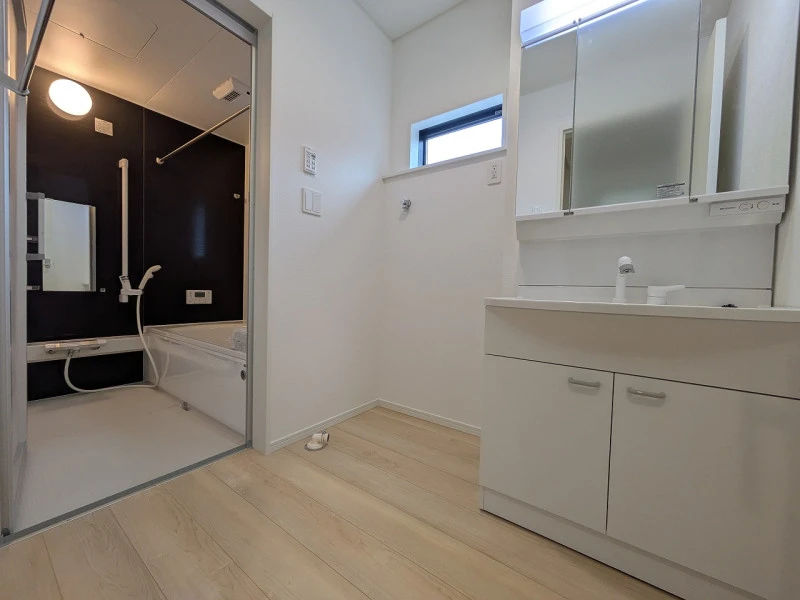 | 設備 | 浄化槽、システムキッチン、カウンターキッチン、浄水器、IHクッキングヒーター、トイレ2箇所、温水洗浄便座、浴室乾燥機、複層ガラス、ルーフバルコニー、オール電化、床下収納、ディンプルキー、モニタ付インターホン、火災警報器等設置済、上水道、室内洗濯機置場、駐車2台可、バス・トイレ別 | ||