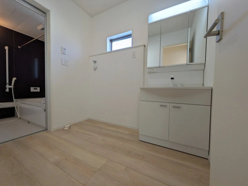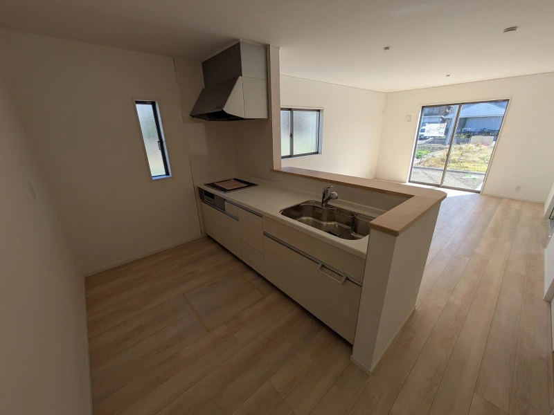 | 設備 | 浄化槽、システムキッチン、カウンターキッチン、浄水器、IHクッキングヒーター、トイレ2箇所、温水洗浄便座、浴室乾燥機、複層ガラス、ルーフバルコニー、オール電化、床下収納、ディンプルキー、モニタ付インターホン、火災警報器等設置済、電気、駐車2台可、バス・トイレ別 | ||