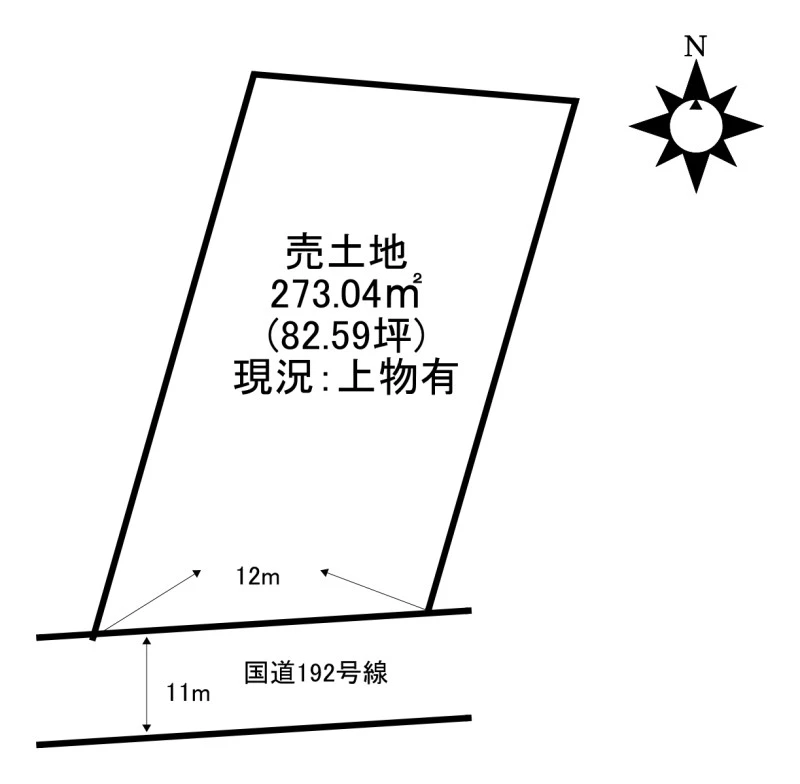 国道192号線沿いで宅地出ました!整形地の82坪!住宅にも良し店舗や事務所・駐車場にも良し!