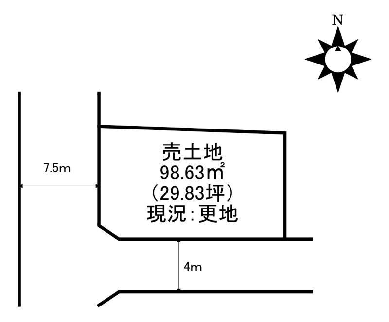 角地 南 間口9m 公道 幅4m 西 間口7m 公道 幅7.5m |