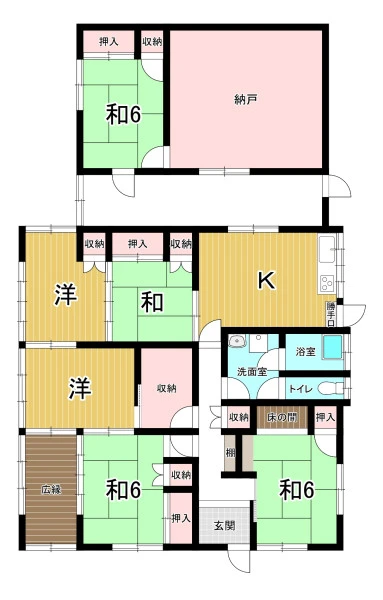 吉野町西条の中古住宅です。閑静な住宅街に位置しており大通りへのアクセスも良好。5SDKの平屋に物置もあり、広々したお庭、建物の横に家庭菜園ができる土地もあり沢山の活用方法があります。