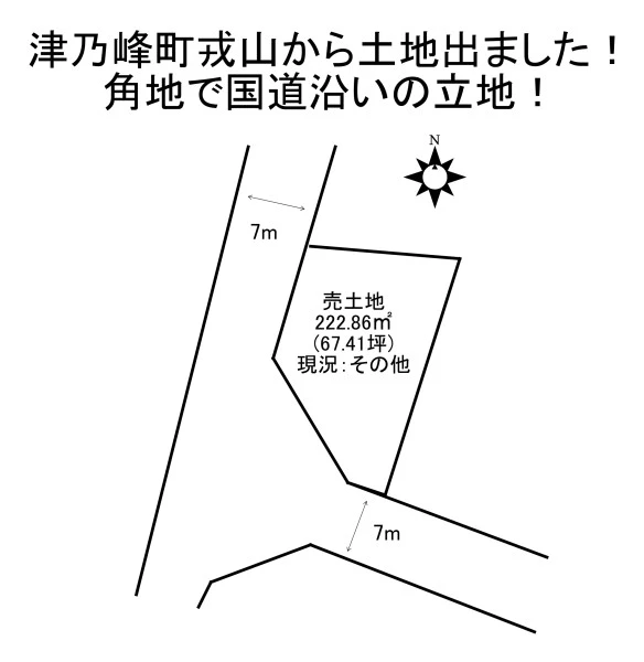 津乃峰町戎山から土地出ました!角地で国道沿いの立地!更地渡し!