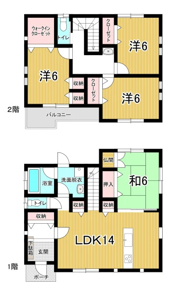 | 特徴 | 平坦地、全居室収納、和室、閑静な住宅街、前道6m以上 | ||
