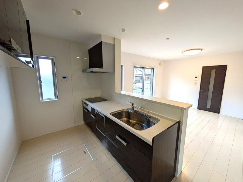| 設備 | 上水道、浄化槽、オール電化、バス・トイレ別、浴室1坪以上、浴室に窓、浴室暖房、追焚機能、浴室乾燥機、トイレ2箇所、温水洗浄便座、シャンプードレッサー、システムキッチン、カウンターキッチン、駐車3台以上可、IHクッキングヒーター、室内洗濯機置場、食器洗浄乾燥機、床下収納、ウォークインクローゼット、モニタ付インターホン、ルーフバルコニー | ||