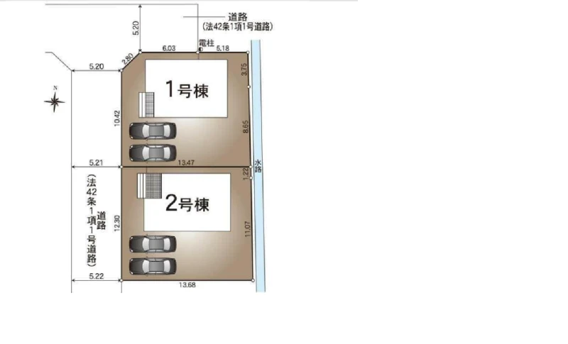 角地 北 間口6m 公道 幅5.2m 位置指定無 西 間口10.4m 公道 幅5.2m 位置指定無 |