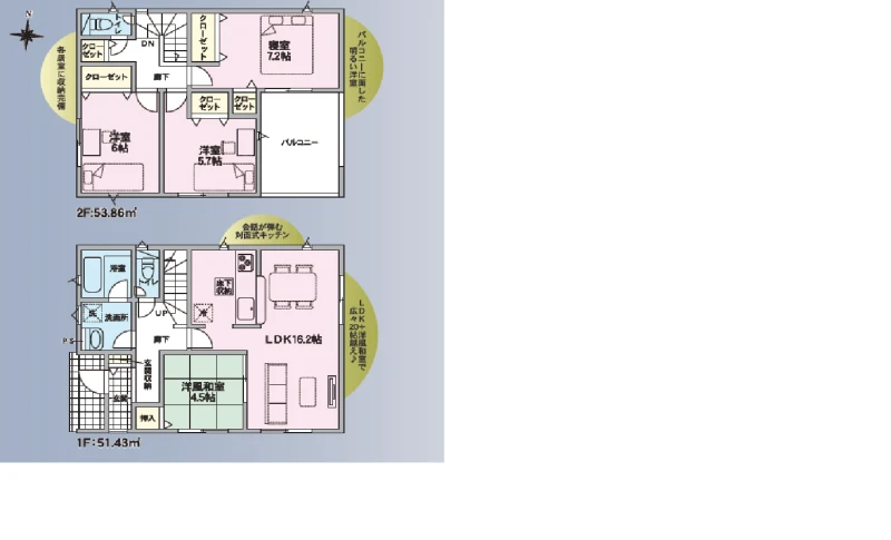 | 設備 | ガスその他、電気、上水道、浄化槽、システムキッチン、カウンターキッチン、浄水器、IHクッキングヒーター、給湯、トイレ2箇所、温水洗浄便座、シャンプードレッサー、浴室乾燥機、フローリング、複層ガラス、ルーフバルコニー、オール電化、収納スペース、床下収納、ディンプルキー、モニタ付インターホン、火災警報器等設置済、室内洗濯機置場、駐車2台可、バス・トイレ別、浴室に窓 | ||