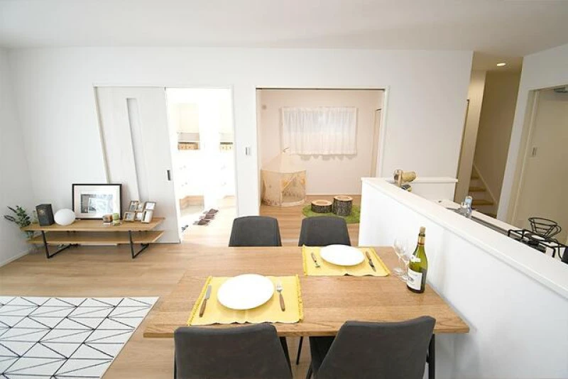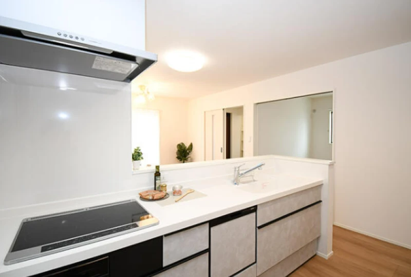 | 設備 | 上水道、浄化槽、システムキッチン、カウンターキッチン、浄水器、食器洗浄乾燥機、IHクッキングヒーター、トイレ2箇所、温水洗浄便座、複層ガラス、オール電化、ウォークインクローゼット、床下収納、駐車3台以上可、ディンプルキー、モニタ付インターホン、火災警報器等設置済、室内洗濯機置場、南面バルコニー、3口以上コンロ、バス・トイレ別、浴室乾燥機、追焚機能、浴室暖房、洗面台、シューズインクローゼット、シャンプードレッサー | ||