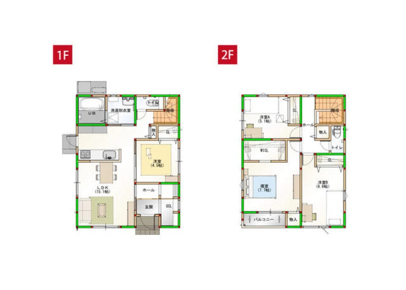 ★間取り4LDK(1F:LDK15.1帖、洋室4.5帖 2F:洋室5.1帖、洋室6.6帖、寝室7.7帖)