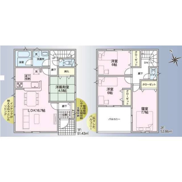 | 設備 | 都市ガス、電気、上水道、下水道、システムキッチン、カウンターキッチン、浄水器、給湯、トイレ2箇所、温水洗浄便座、シャンプードレッサー、浴室乾燥機、フローリング、複層ガラス、ルーフバルコニー、収納スペース、床下収納、ディンプルキー、モニタ付インターホン、火災警報器等設置済、建設住宅性能評価取得(予定含む) | ||