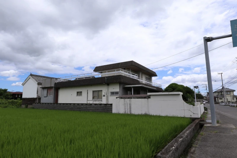 昭和レトロの趣を色濃く残す6LDK。県道沿いでアクセス良好、敷地約993㎡に住宅2棟と物置付き。二世帯住宅や店舗、民泊やゲストハウスの運営に最適な希少な物件です。