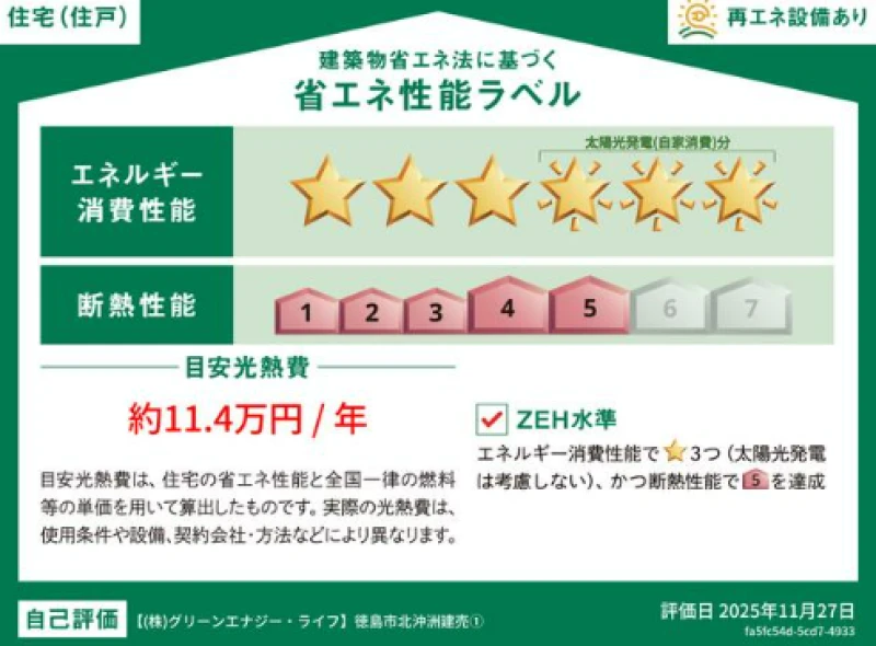 オール電化・耐震等級3相当・ZEH仕様・断熱性能5等級以上・一次エネルギー消費量6等級以上