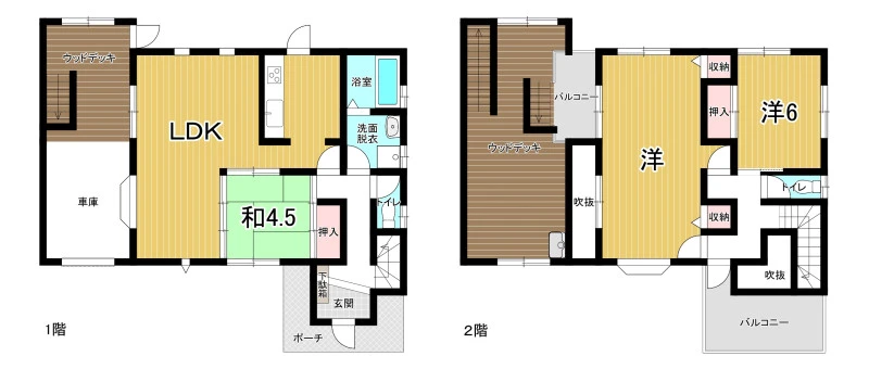 | 設備 | 上水道、電気、浄化槽、駐車2台可、浴室1坪以上、バス・トイレ別、浴室暖房、浴室乾燥機、トイレ2箇所、温水洗浄便座、シャンプードレッサー、IHクッキングヒーター、システムキッチン、カウンターキッチン、モニタ付インターホン、浴室に窓、室内洗濯機置場、ウッドデッキ | ||