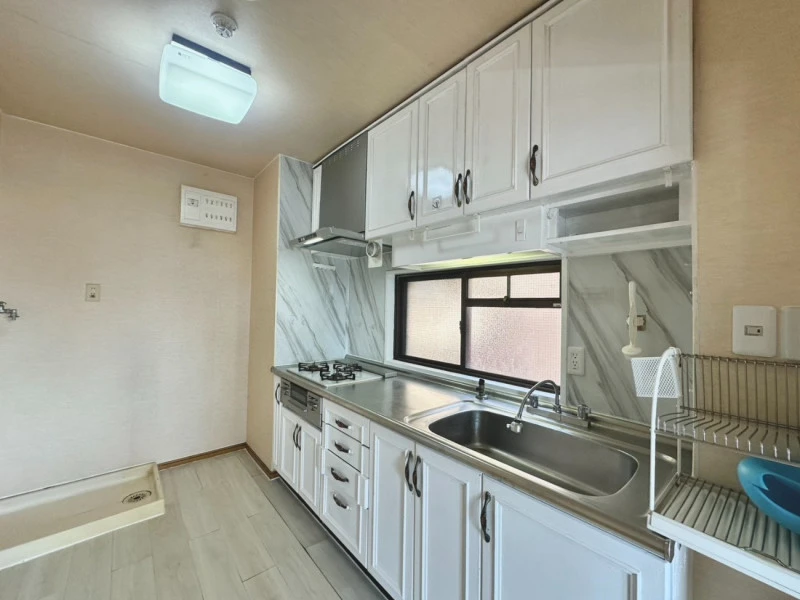 | 設備 | 都市ガス、室内洗濯機置場、駐輪場、システムキッチン、収納スペース、オートロック、防犯カメラ、下水道、上水道、ガスコンロ、南面バルコニー、2面バルコニー、モニタ付インターホン | ||