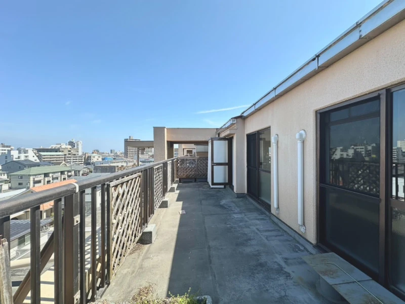 最上階角部屋×96.33㎡のゆとりある3LDK。南向きバルコニーで日当たり良好、北側にはルーフテラスを備えた開放的な住まいです。駅徒歩8分、小学校徒歩5分・中学校徒歩10分と生活環境も充実。過去に一部リフォーム済みですが、自分好みの再リフォームで理想の住まいを実現できるポテンシャルも魅力です。