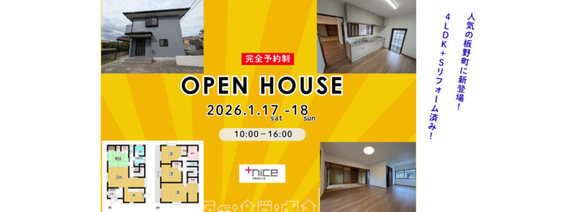板野郡板野町大寺字亀山下でリフォーム済み中古戸建てのオープンハウスを開催します。